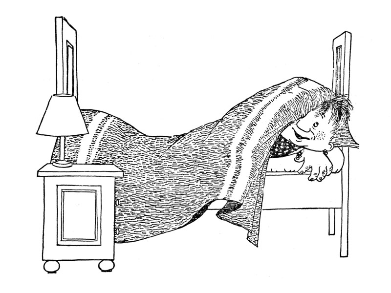 Пропустим скорее то, что Малыш был «преисполнен благодарности», потом чмокнул маму в руку, да еще и сказал: «Как я люблю тебя, мамочка!» Все это не имеет к реальности никакого отношения. Опустимся с небес на землю. Там Карлсон что-то говорит о деньгах. А, он заболел. И требует, чтобы малыш стал ему родной матерью. То есть купил ему какие-то сласти. Для этого приходится вскрыть тяжелую копилку (непедагогичная затея, у детей не может быть денег, и вообще это ведет к стяжательству). Копилка неприятно волнует, но не задевает. Дальше, дальше.