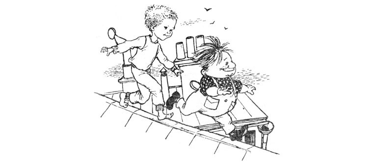 Малыш, как известно, загулялся по крышам, в конце концов его снимали оттуда пожарные. Я рисовала себе страшные картины: что бы было, если бы я улизнула на крышу. Да меня бы просто убили! А у этих вот так: «Никогда больше так не делай. Запомни, Малыш, никогда!»