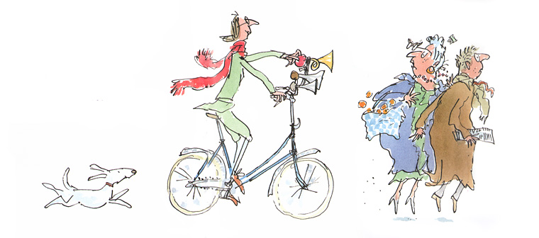 Художник-карикатурист Квентин Блейк известен прежде всего как иллюстратор детских книг Роальда Даля, «сказочника номер один в мире», как говорят англичане. Однако у Блейка есть и собственные книги, где он является автором текста и рисунков. В издательстве «Мелик-Пашаев» вышли две его книжки картинки: «Миссис Бампс крутит педали» и «Миссис Бампс за рулем» (в оригинале ‒ «Mrs Armitage on Wheels» и «Mrs Armitage Queen of the Road»). В первой из них неунывающая англичанка превращает самый обыкновенный велосипед в многофункциональное транспортное средство. А во второй она, наоборот, деконструирует городской автомобиль. Надо признаться, давно мы с сыновьями так не хохотали за чтением вслух.