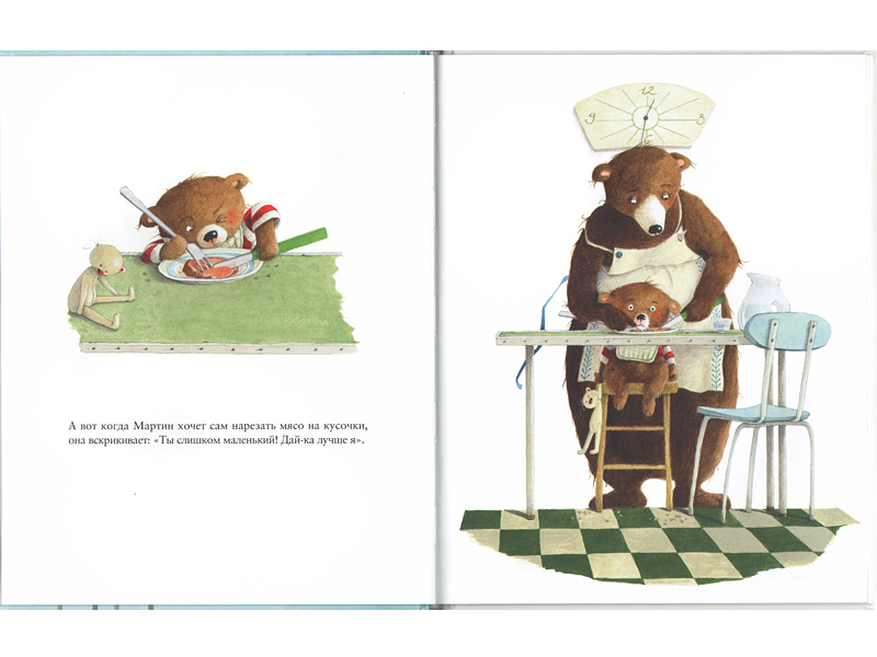 Об этом и книжка – о том, как интересно устроен ребенок (простите, медвежонок). И как он находит в себе внутренние силы научиться принимать реальность и соизмерять себя и свои желания с обстоятельствами – чтобы чувствовать: ты – «нужного размера».