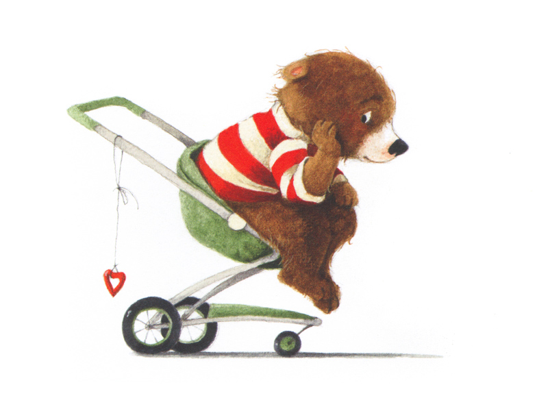 Художница Эва Тарле очень выразительно показывает, как чувство несоразмерности в буквальном смысле пригибает медвежонка к земле: он до поры до времени ничего не может с этим поделать, ничего не может этому чувству противопоставить.