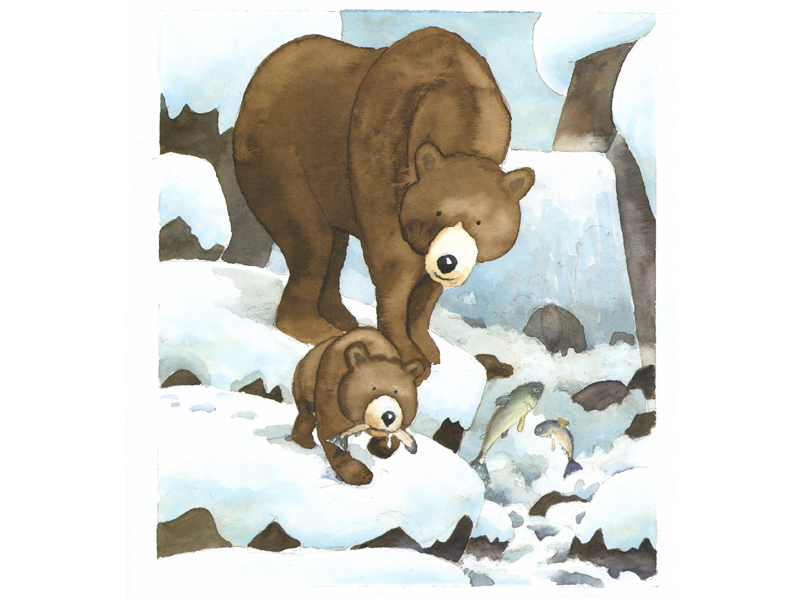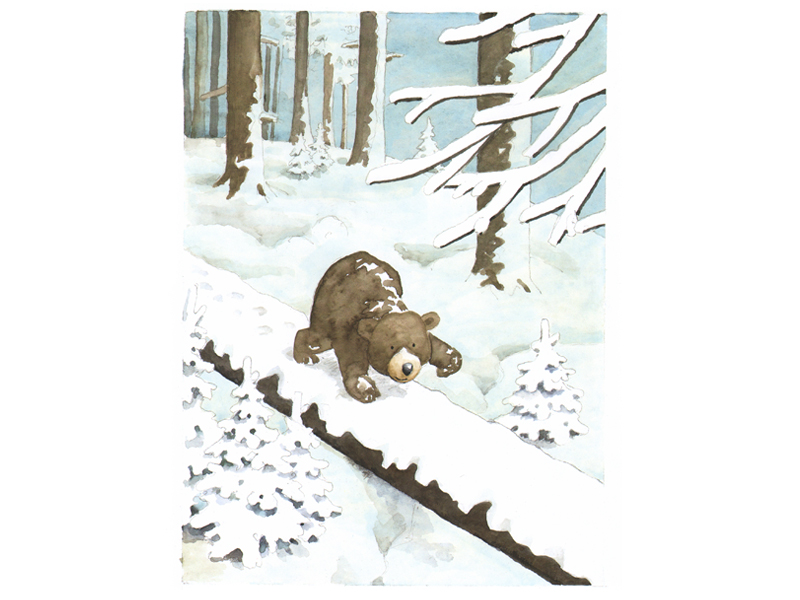 Не слишком ли высокую планку я ставлю для книги, предназначенной «для чтения взрослыми детям 0+»? Не слишком, если учесть, что настоящая сказка всегда многослойна и рассчитана на то, что ее могут одновременно воспринимать дети совершенно разных возрастов. И каждый, разумеется, впитает свое. Мы читали эту историю вместе с двухлетним тогда Федюшкой и пятилетним Митей, которым я часто читаю одно и то же. Для Феди, проходящего свою первую полосу «бунтарства», отделения от мамы, особенно привлекательны книги, где дети вовсю не слушаются взрослых и смотрят, что из этого получается. И он, разумеется, многократно просил перечитывать те самые восемнадцать страниц, где медвежонок всячески проявляет свои интересы и совершенно игнорирует мамину просьбу. Но мудрая медведица не читает ему нотаций о послушании, не шлепает, не сердится, а снова и снова ласково, но твердо напоминает: пора спать! И что еще очень важно – всегда слышит своего сына, откликается на его потребности, а не обесценивает или игнорирует их. Пусть это получается очень долго и непросто, но они вместе ищут приемлемый компромисс – медвежонок наедается снега, восемнадцатый раз скатывается с горки и все-таки идет спать. А мама рассказывает ему сказку восемь (!) часов подряд, но зато и засыпает сама даже тогда, когда малыш все равно никак не может угомониться. И будит его строго по весеннему расписанию, несмотря на то что малыш просит «поспать еще недельку». По-моему, отличное пространство для разговора с детьми двух-пяти лет о личных интересах и границах, об ответственности за принятие собственных решений и соблюдении договоренностей.