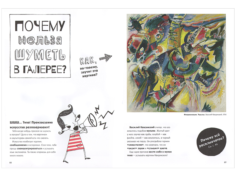 Может показаться, что все эти вопросы сугубо специальны и могут заинтересовать лишь школьников, изучающих МХК. Но, на мой взгляд, искусство – не резервация для «умных» (помните один из вопросов книги: надо ли быть умным, чтобы ходить на выставки?), а один из самых важных и сложных инструментов самопознания человека. И осваивать этот «инструмент» можно уже в детстве. Хорошие книги в этом только помогают.