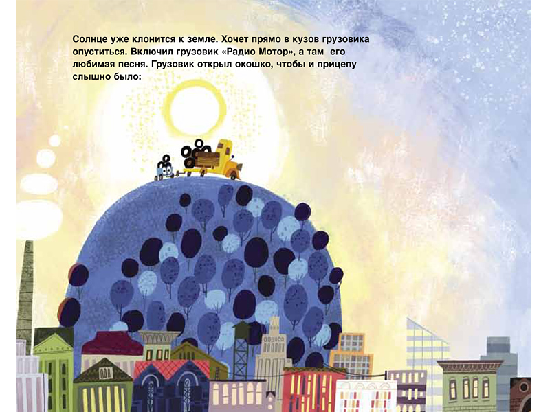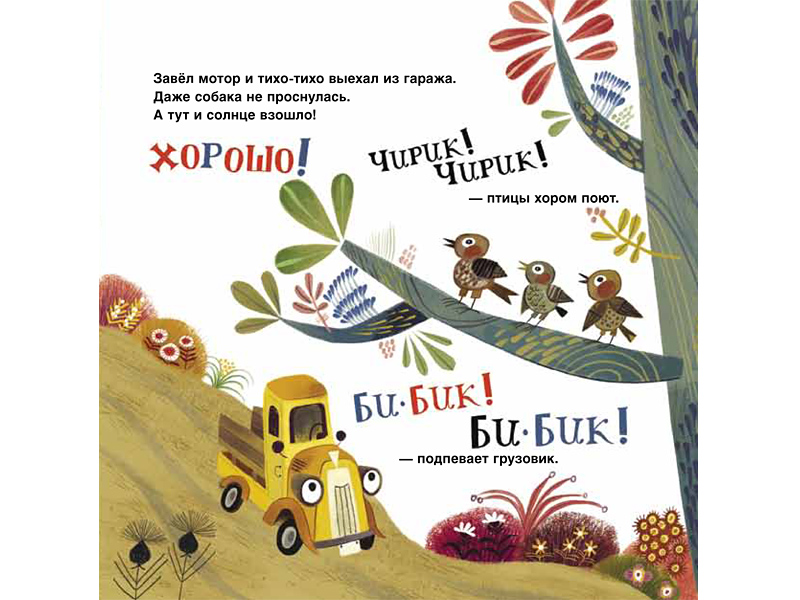 Читаем дальше: «Хмурый грузовик едет по дороге и прицеп за собой тащит».