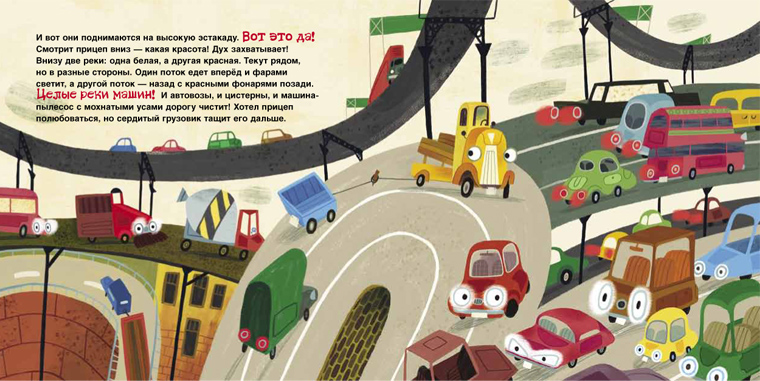 Дочитали последние страницы и закрыли книгу. Я молчала несколько минут. Паша забрал книжку и стал сам ее листать. Как типичного мальчишку, его интересуют машины: разглядывает все виды техники, которые встречали по пути герои книги, находит светофор, пешеходный переход и т.п. Слышу, как он что-то бормочет про грузовик и прицеп. Видимо, история его тоже зацепила, но пока он сам ее обдумывает и поделится со мной позже.
