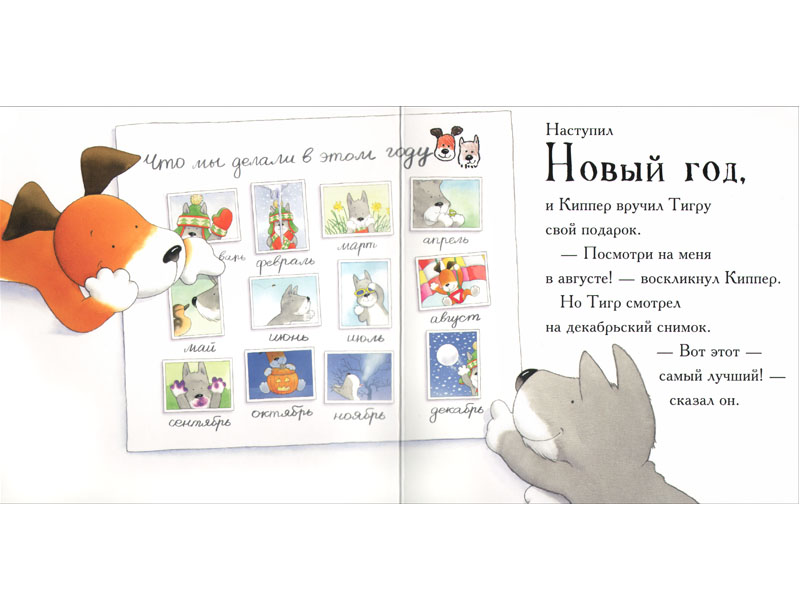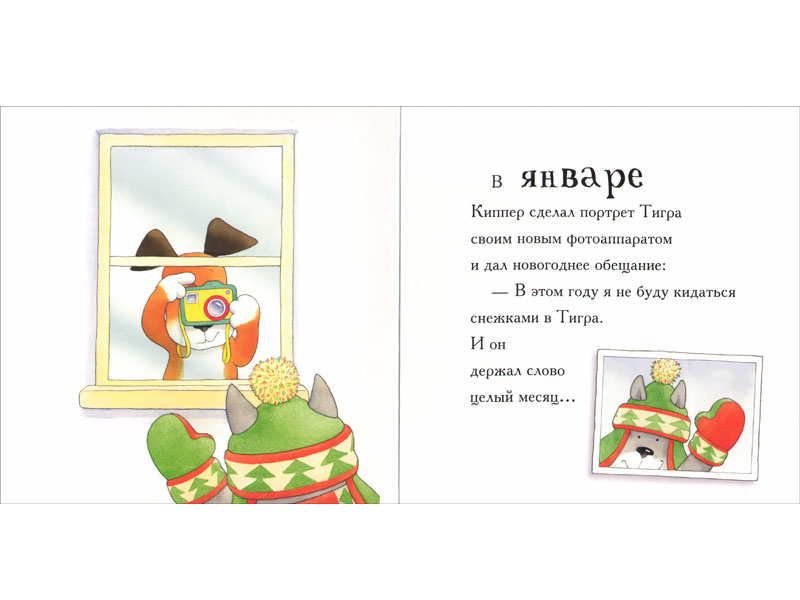 Если говорить о книжках Мика Инкпена с точки зрения познавательных тем, то одна из них, «Календарь Киппера», поможет малышу запомнить названия месяцев и признаки времен года, другая – названия детенышей животных. Третья тема сложнее ‒ здесь выясняются некоторые свойства снега: например, что снег налипает на шерстяную одежду…