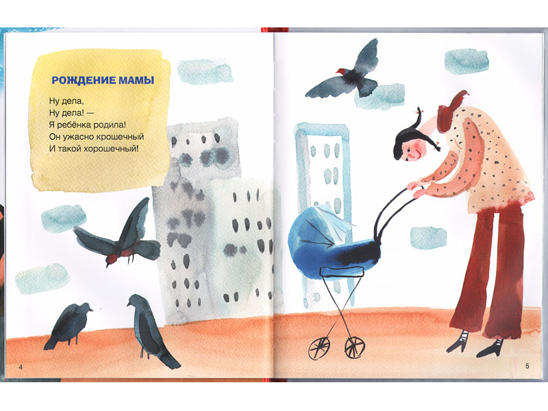 Некоторые стихи написаны от имени мамы, некоторые ‒ от имени младенца. И если на месте мамы ребенок-читатель еще может себя представить, то вот на месте младенца – вряд ли. Родители часто рассказывают детям о том, как они были маленькие, но это всегда как бы «взгляд со стороны». А эти стихи помогают детям 4, 5, 6, 10, 12 лет – да, в общем то, любого возраста – хотя бы примерно представить, что мог бы сказать младенец. Это вопящее и агукающее существо вдруг обретает собственный голос.