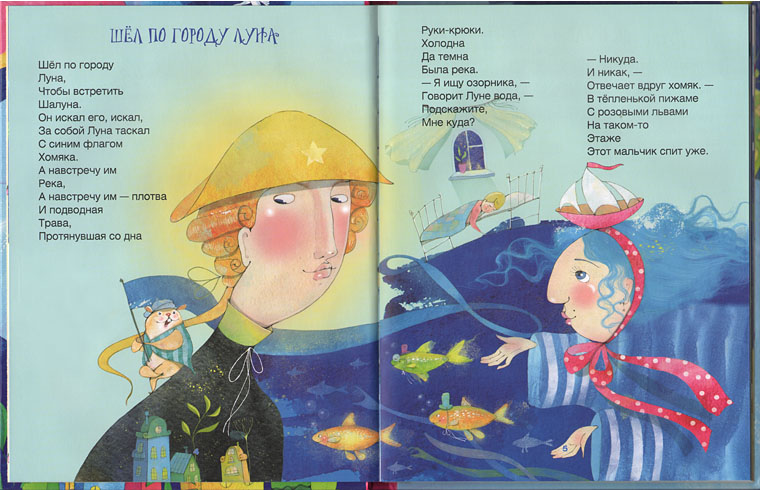 Ирина Галкина, художник книги «Шёл по городу Луна», и Юлия Сомина, чьи иллюстрации мы видим на страницах книги по старушек, рисуют этот упорядоченный мир совсем по-разному. Но каждый раз с огромной любовью. Их картинки дают читателю огромный простор для воображения, достраивания, игры со словесными образами.