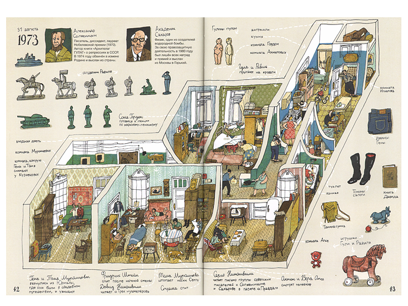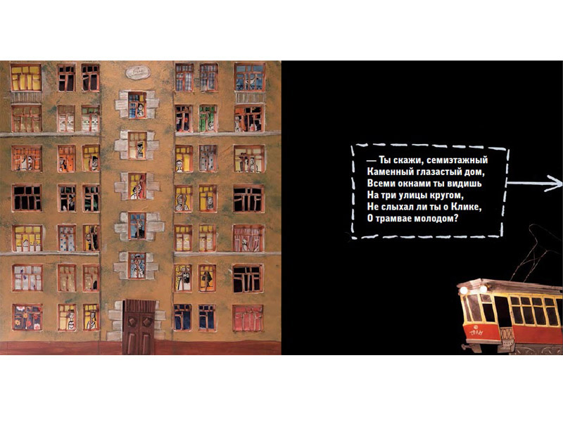 – Это очень зависит от автора. Когда я иллюстрировала «Два трамвая», повлиять было бы невозможно, потому что Осип Мандельштам, к сожалению, уже давно умер. А если я работаю с автором, и текст пишется параллельно книге, – то да. Во время работы над книгой об истории транспорта Саша очень хотела, чтобы мы там разместили три или пять видов разных рельсов. А я никак не могла их впихнуть, и сказала Саше: «Давай откажемся от этой идеи». И со «Старой квартирой» было так же. Я говорю: «Давай сделаем вот так. Может быть, у нас здесь будет то-то, поэтому лучше так». Ну, и Саша, со своей стороны, предлагала: «Может быть, так?» Во время работы над этими двумя книжками мы с ней очень тесно взаимодействовали и друг на друга влияли. Это работает.