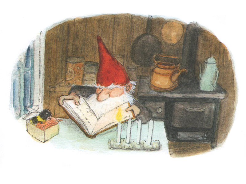 В ожидании гнома и Рождества жизнь лесных жителей меняется. Все готовятся к празднику по-своему. Дедушка сочиняет приветственную песню, папа снова чистит шляпу, мама и тетя готовят угощение, а зайчата Нина и Ника не могут ждать, им хочется танцевать, но танцы с прыжками опасны для посуды, и, конечно, чашка разбивается. Что теперь будет? Зайчиха отругает зайчонка так же, как мама наказывает Сережу, если он не слушается? Ему становится жалко чашку, но еще больше жалко самого себя…