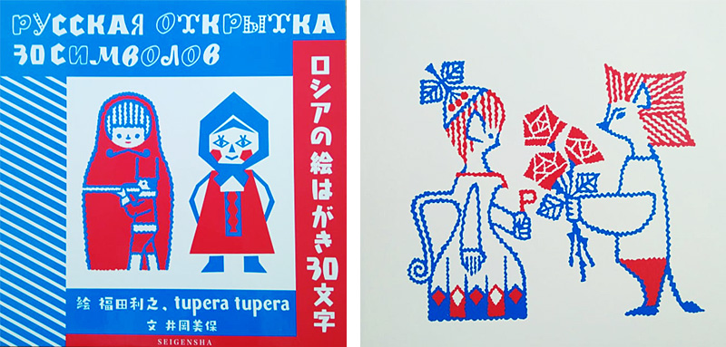 А еще tupera tupera в соавторстве с художником Тосиюки Фукуда проиллюстрировали набор открыток с русским алфавитом. Этим летом в Японии гостит выставка московского Пушкинского музея, и эти открытки продаются там как сувениры. К каждой букве есть пара строк пояснительного текста. Например, на открытке с буквой «Р» нарисованы розы и рассказывается, что в России мужчины дарят женщинам большие букеты цветов, поэтому многие цветочные магазины работают 24 часа. В Японии вообще не принято дарить девушкам цветы. Разве что невесте. Автор комментариев ‒ Михо Иоко. У нее два кафе, где продаются сувениры из России: матрешки, советские игрушки, фарфоровые статуэтки. Сама она регулярно летает в Москву. Вот такой борщ получился. Всегда приятно узнавать, что у разных культур есть точки взаимного соприкосновения.
