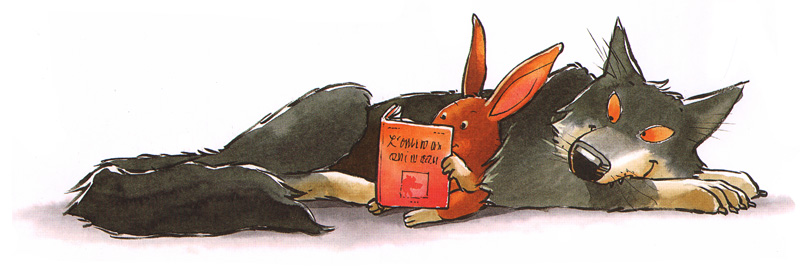 Читать Клыку соглашается только маленький крольчонок – под честное обещание волка не есть его. И прямо у нас на глазах вершится преобразующее чудо чтения: волк не просто уже не может жить без крольчонка и его чтения вслух, им овладевает желание научиться читать! А потом он и сам становится главным чтецом в лесу.