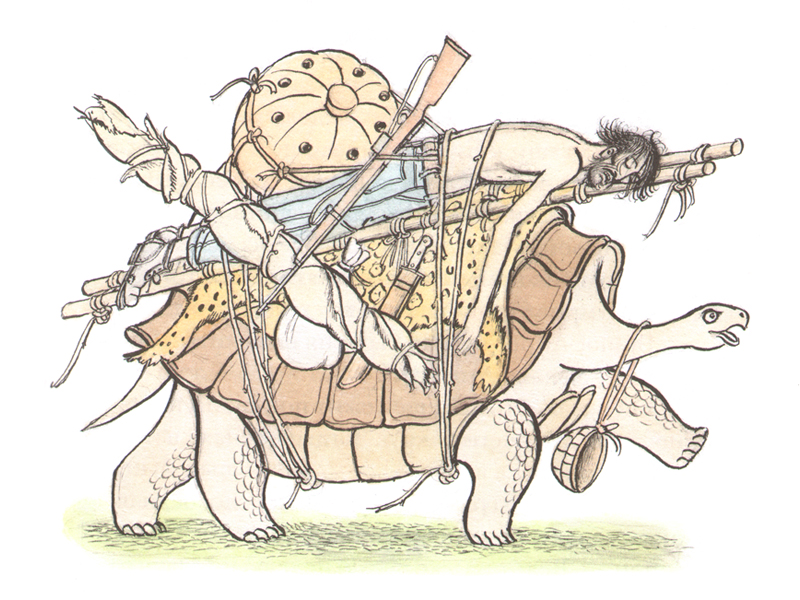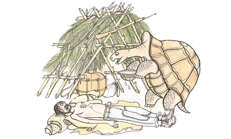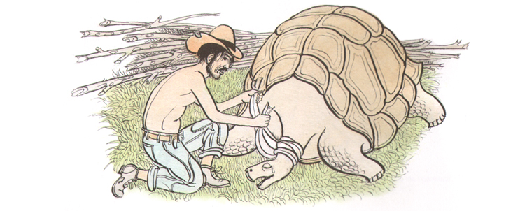 О герое-человеке могут сообщаться разные сведения: что он, к примеру, отличный охотник и прекрасно знает жизнь сельвы, или что он «никому не мешал ловить рыбу, но не давал губить миллионы рыбок зря». При этом он остается «просто человеком», представителем человеческого рода, вступающего в отношения с природой. И эти отношения всегда полны сострадания и желания помочь. Вот человек, испытывающий мучительное чувство голода, желает подкрепиться черепашьим мясом. Но выясняется, что черепаха побывала в зубах ягуара, что у нее почти оторвана голова. И страдания черепахи, ее видимые мучения вытесняют у человека чувство голода. Вместо того чтобы съесть черепаху, человек начинает ее лечить. И когда ситуация переворачивается, когда неожиданно заболевает сам человек, черепаха спасает его – несет в Буэнос-Айрес. Похожая ситуация описана и в сказке «Переправа через Ябебири»: на того человека, который «никому не мешал ловить рыбу, но не давал губить миллионы рыбок зря», нападает ягуар. Человек сильно ранен. Ягуар охотится за ним. Но те самые рыбки, которых жалел человек, встают на его защиту.