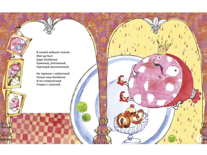 Но довольно уже о супе! Наконец, ура-ура-ура, появилась в детской литературе и колбаса! Маша Рупасова не подвела, только что вышла ее новая книжка, которая так и называется – «Сказки о царе Колбаске» (художник Юлия Сомина, издательство «Альпина Паблишер», 2018). Вот кто, оказывается, на детское счастье, живет в холодильнике и им милостиво правит: