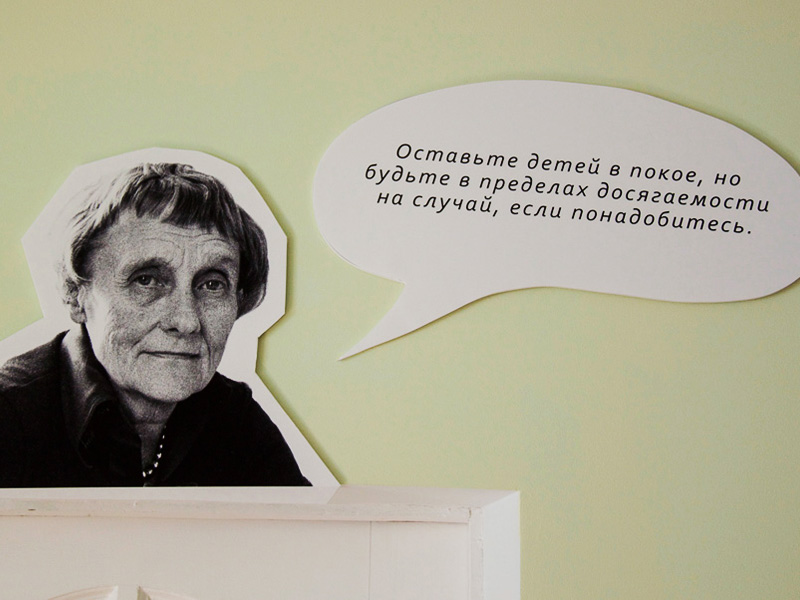 Наша выставка – семейная, мы хотели, чтобы она была интересна и взрослому, и ребенку. Название выставки «Оставьте детей в покое» тоже обращено к взрослым. Это цитата из интервью Астрид Линдгрен, которая полностью звучит так: «Оставьте детей в покое, но будьте в пределах досягаемости на случай, если понадобитесь».
