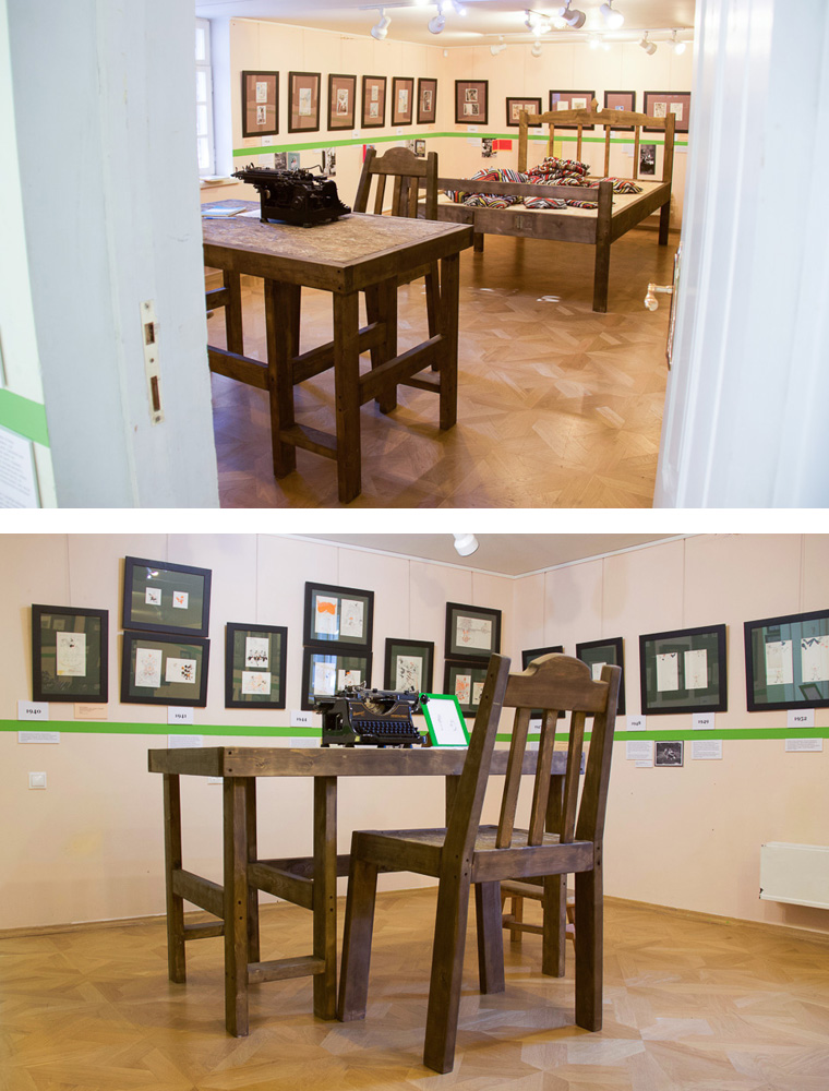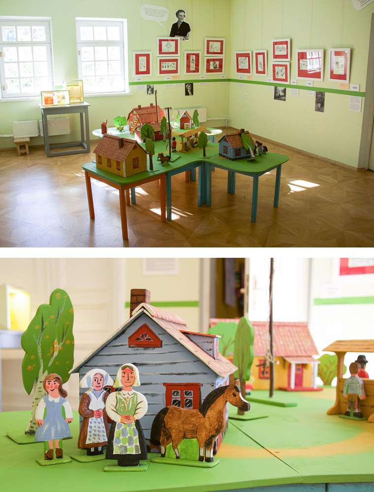 Наше выставочное пространство разделено на два зала. Первый посвящен детству Астрид Линдгрен. Центральное место в этом зале занимает макет шведской деревни. На стенах – иллюстрации к книгам «Мы все из Бюллербю», «Эмиль из Лённеберги», «Пеппи Длинныйчулок» и «Ронни, дочь разбойника». Второй зал посвящен писательской жизни Астрид Линдгрен в Стокгольме. Здесь мы устроили условный кабинет писательницы.