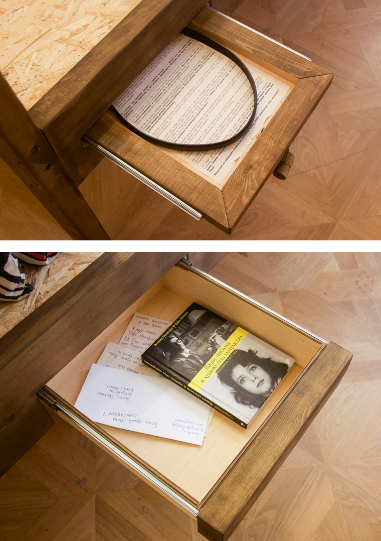 По бокам кровати находятся секретные ящики. Внутри каждого спрятаны вещи ‒ символы жизненных ценностей Астрид Линдгрен. В одном лежат ремень и цитаты из ее речи «Нет насилию!». Во втором – отрывок из письма 13-летней Сары Швардт, с которой Астрид Линдгрен переписывалась много лет. Эта история вызывает особый интерес у подростков. Почему Астрид Линдгрен стала переписываться именно с этой девочкой? О чем они писали друг другу? В ящике лежит книга «Ваши письма я храню под матрасом», где опубликована вся их переписка.