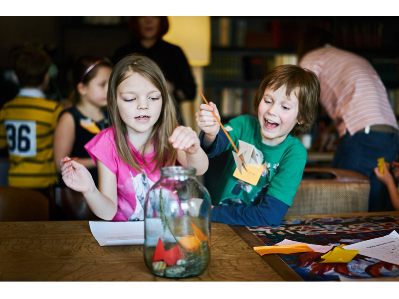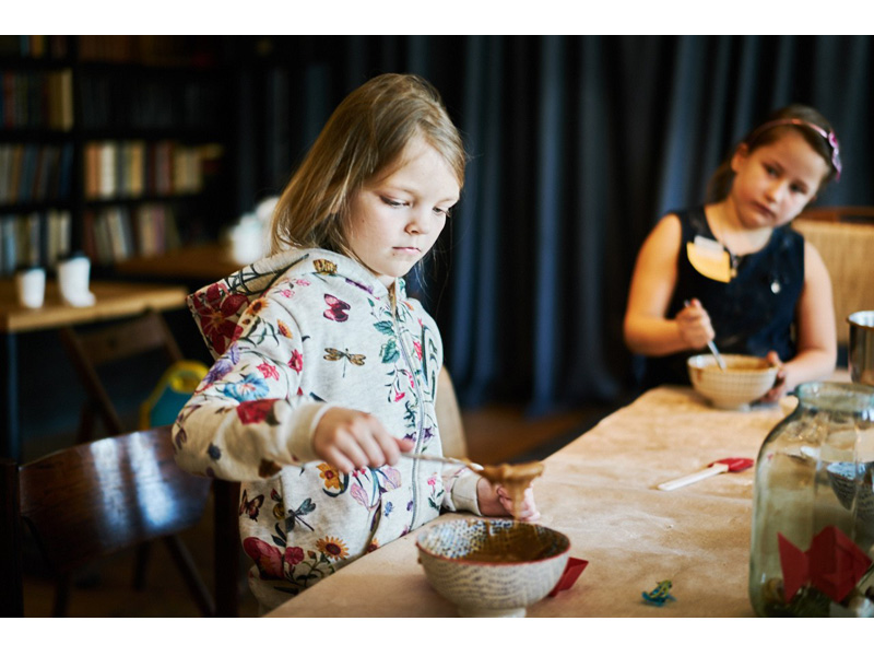 Полтора года назад вместе с музейным педагогом Ксенией Меньшиковой мы открыли в Петербурге литературную студию «Словоформы». Все наши занятия с детьми – это примеры читательских практик в поддержку семейного чтения. Материал может быть разным (хотя выбранные книги всегда заслуживают внимания, на мой взгляд), но главное, как нам кажется, – создавать игровое пространство вокруг текста, чтобы ребенок радовался чтению и открывал в себе читателя. Например, рядом с Фонтанкой и Летним садом мы нашли арт-клуб «Книги и Кофе», который напоминает пекарню Ковригсена из сказок Руне Белсвика о Простодурсене, и там за чтением готовим десерты для жителей Приречной страны.