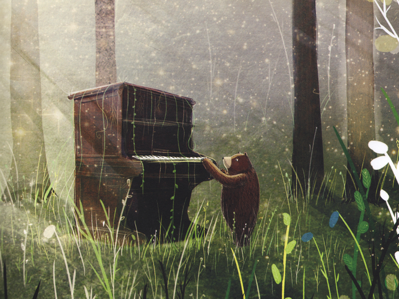 В один прекрасный день маленький медвежонок обнаруживает в лесу пианино. Эта «штука» настолько его поражает, что он возвращается к ней снова и снова – пока не становится замечательным музыкантом. Настолько замечательным, что первые же люди, услышавшие его игру, предлагают ему перебраться в город и там обрести славу и довольство.