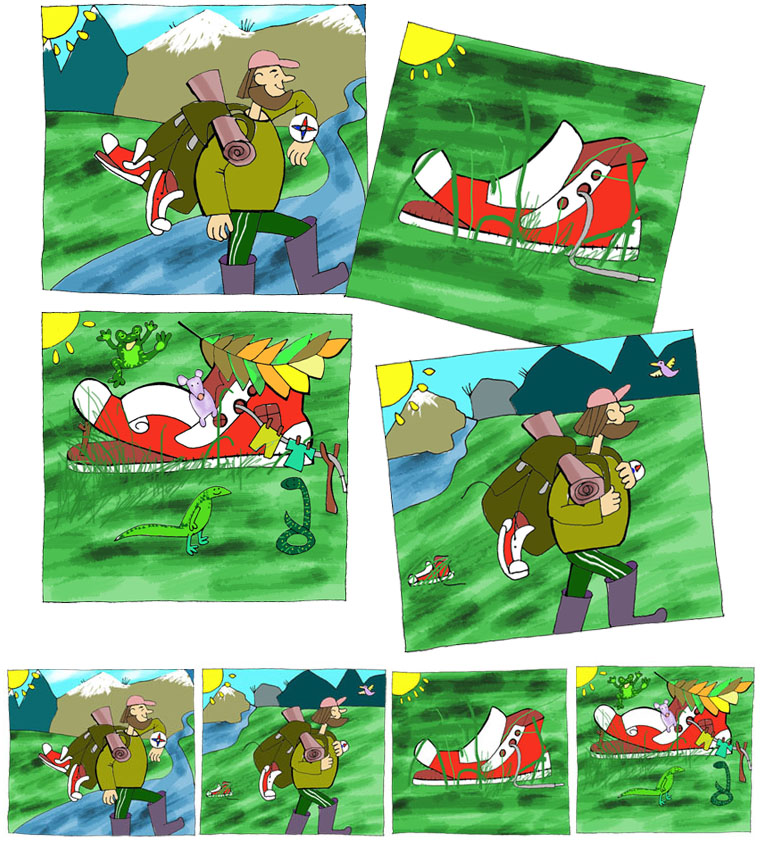 This dialogue-based observation of each picture naturally builds the story as a whole. Still, we haven’t specifically set out to create a cohesive storyline. As a result, our speech is fairly simple grammatically speaking and the story itself isn’t cast into the streamlined form of a monologue. The visual images are only partially converted into verbal ones.