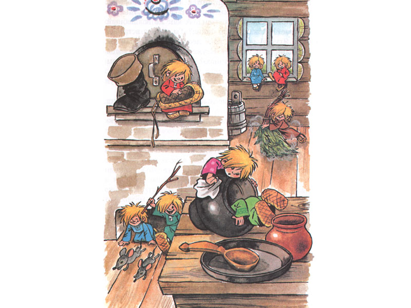 Книга насыщена фольклорными словечками, пословицами и прибаутками, приметами. Когда мы начинали читать, я боялась, что Лёне это все будет скучно – но я глубоко ошиблась. Конечно, он не все понимает: мы с ним обсуждаем, что такое коврижки и чугуны, что значит «седьмая вода на киселе» или «пора и честь знать», почему спят на лавках. Некоторые слова переходят в активный словарь Лёни: например, фирменное кузькино «олелюшечки» в нашем доме теперь обозначает сладости с кремом, вроде пирожных или тортов.
