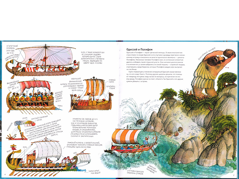 А вот в книжке-картинке любая технология может быть подана как увлекательное действо прямо «здесь и сейчас» ‒ ведь интересно смотреть на картинки, на которых строительство разворачивается прямо у тебя на глазах. Именно так все и происходит в книге Али Митгуша «Корабли. Искусство навигации от первобытных времен до наших дней». Тут в буквальном смысле работает мудрость «Лучше один раз увидеть, чем сто раз услышать (или прочитать)».