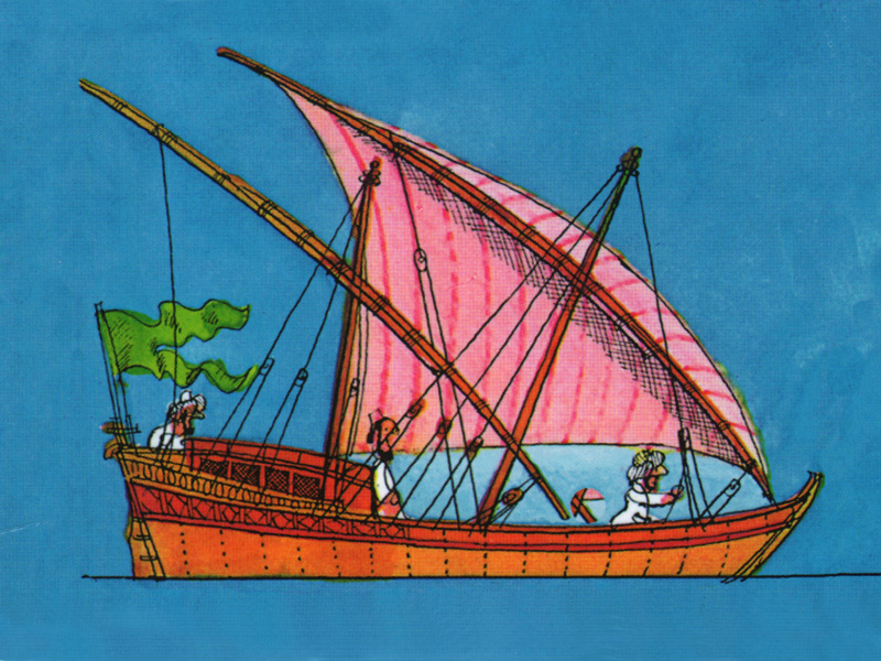 У Митгуша представлены самые разные и достаточно сложные технологии судостроительства: в книге есть развороты, посвященные древнейшим типам лодок (их аналоги используются и по сей день), деревянным кораблям прошлого, устройству подводных лодок, приспособлениям рыболовного промысла и т. п. И если бы Митгуш был учителем начальных классов (я ему этого ни в коем случае не желаю, это просто «примерка» к ситуации общения с детьми), то про него бы говорили: «Он очень понятно объясняет». Понятным становится даже то, что считается сложным.