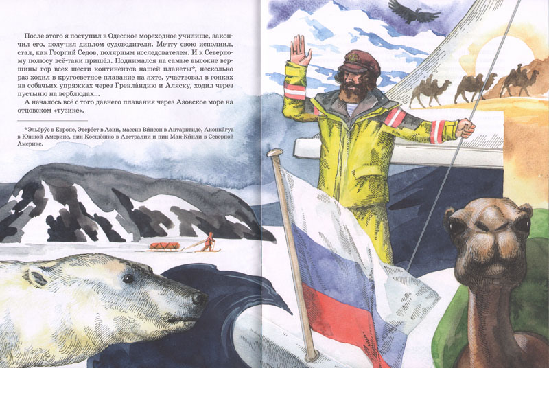 Конечно, книги о путешественниках несут в себе не только ответ на этот запрос. Ребенок узнает из них массу нового. Но такая информация, в отличие, например, от информации, почерпнутой из энциклопедий, носит качественно иной характер: это не просто набор сведений, пусть и любопытных. Это живое человеческое свидетельство. А такое свидетельство всегда больше, чем просто «знание». В нем всегда скрыт дополнительный смысл, связанный с самим человеком и его способностью преодолевать выпадающие на его долю жизненные испытания.