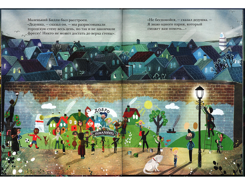Главный герой истории, маленький Билли, однажды рисовал со своими друзьями на улице огромную картину во всю стену, и им никак не удавалось ее закончить. Никто не мог добраться до самого верха. Что делать?