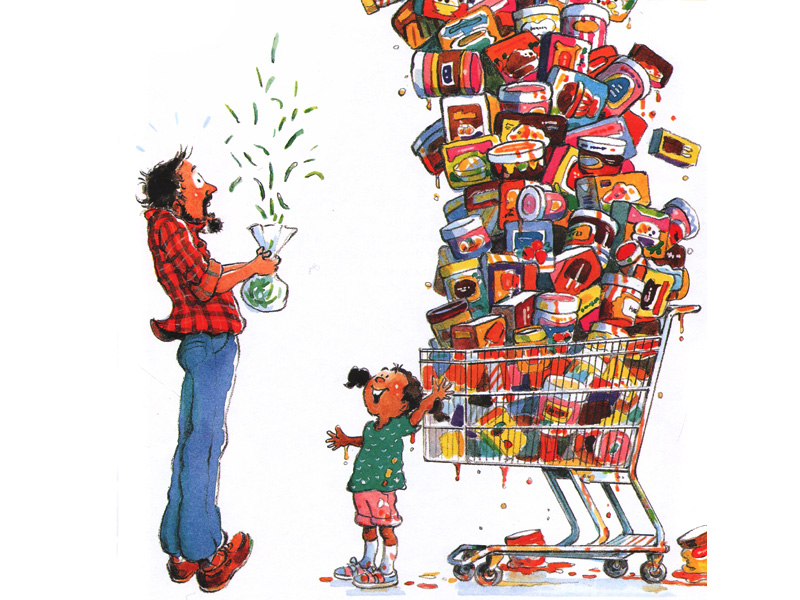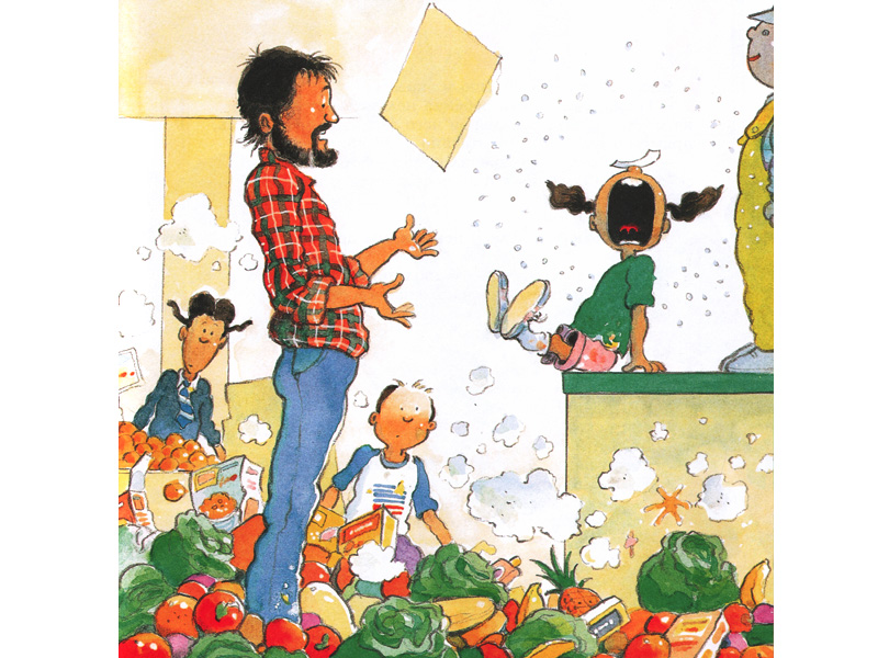 Вылитая Тия из рассказа «Хоть что-то хорошенькое». А книжный папа Тии – вылитые мы. Он покупает только полезные продукты – никаких конфет, пирожных и шоколада. А Тия то и дело подкладывает в тележку все вкусненькое. Уступить никто не готов: папа непреклонен, Тия полна решимости. В конце концов папе приходится купить саму Тию. Не спрашивайте, как до этого дошло. Все в нашей семье узнали в рассказе друг друга и дружно сделали вид, что мы ни капельки не похожи на этих «чокнутых» персонажей.
