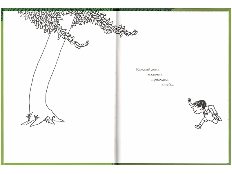 – Про мальчика и дерево! – сама просит Аня. Ей нравится, как дерево играет с мальчиком, и нравится глубина, которая появляется в истории ближе к концу, когда мальчик стареет, а от дерева остается лишь пенек.
