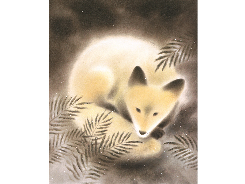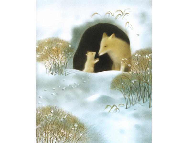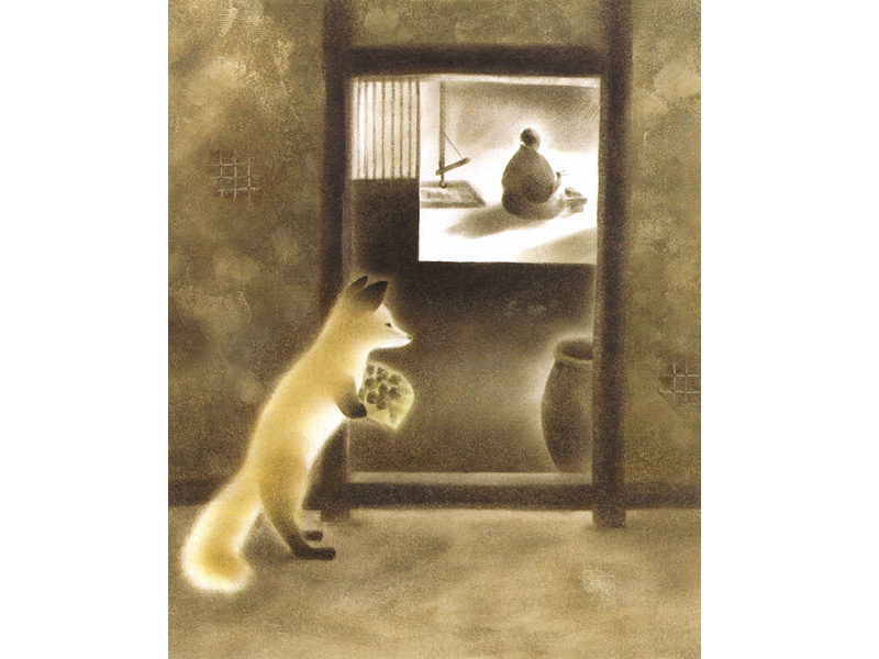 В книгах Нанкити Ниими «Лисенок Гон» и «За рукавичками» иллюстрации выходят за рамки представлений о детскости, они полны тумана и таинственной белесости, а контуры предметов немного размыты. Зато из труб вырывается – и мы это явственно видим – быстрый белый дым, зимний горизонт слегка подрагивает, а на занавеске в окне просвечивает чей-то легкий силуэт. Туманность обманчива, и от внимания иллюстратора не ускользают даже самые крохотные детали. В первую очередь – свет.