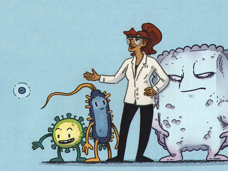 As befits all good literature, these two mischief-makers have to contend with the good guys: the doctor and her trusty Leukocytes—T-cells and B-cells, who fight together against viruses and microbes.