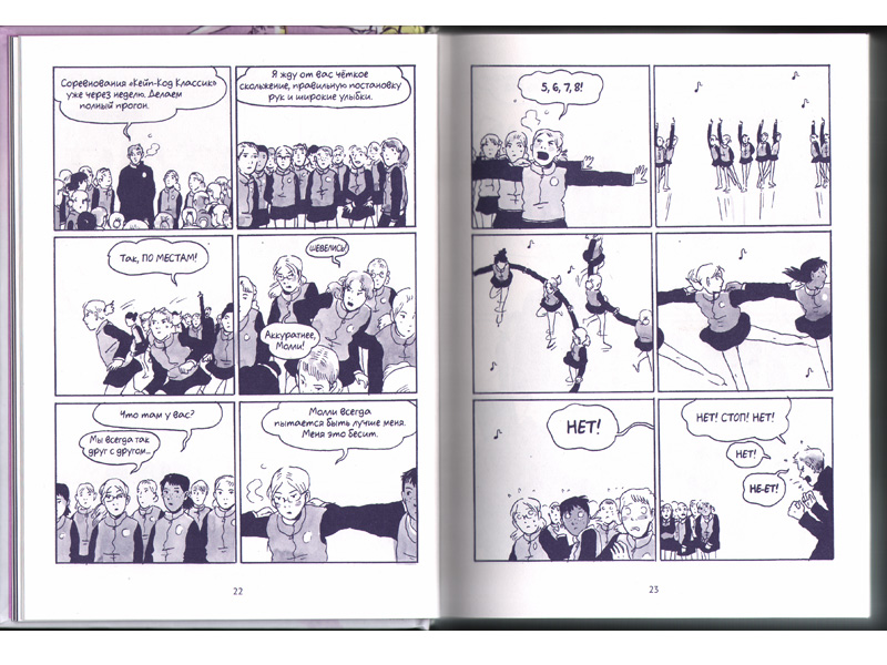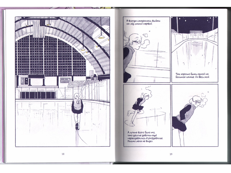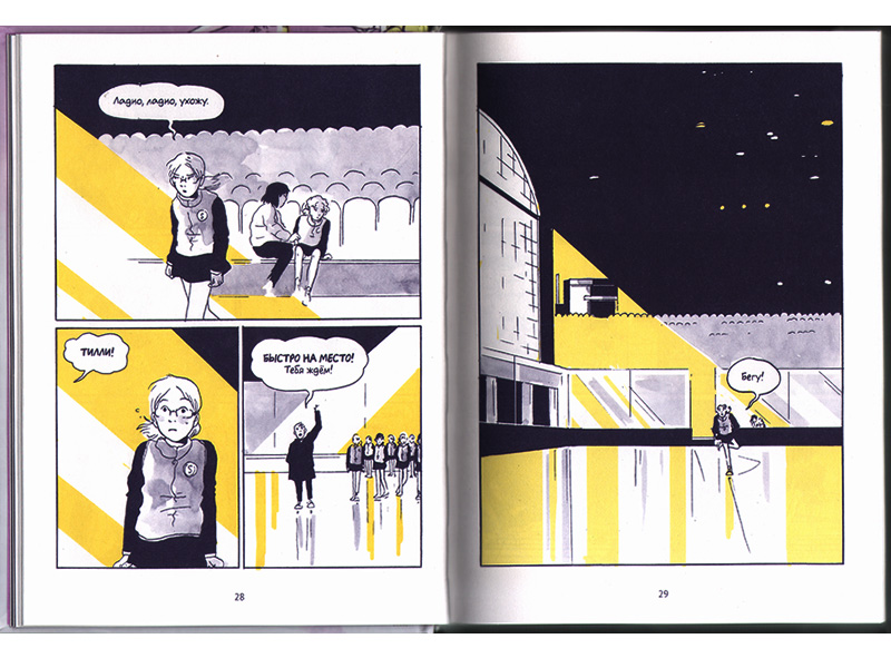 Когда первый раз перелистываешь книгу, удивляешься, сколько в ней бутылочно-синего цвета с редкими всполохами яично-желтого. Кажется, будто эта история будет происходить не на катке, а посреди ночной улицы с редкими фонарями, и сюжетом ее будет грабеж. Знакомясь с книгой ближе, понимаешь, что фигурное катание в каком-то смысле действительно украло у девочки ее жизнь, оставив взамен лишь редкие счастливые воспоминания. Бесконечная муштра, попытки педагога вылепить идеальных фигуристов из детей, которые еще хотят быть детьми, необходимость подстраиваться под окружающих ‒ все это сделало жизнь Тилли тусклой. Встаешь, когда еще темно, тренируешься под искусственным солнцем, учишься под ним же, идешь домой по темноте. Откуда взяться радости, если невозможно вырваться из круга рутины? Наверное, многие могли бы сказать: эта история и про меня тоже.