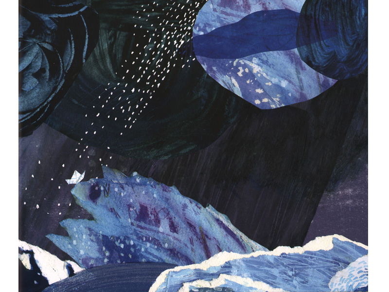 We turned page after page and looked for the little boat on every spread. Here he was trying to catch a motorboat, or with people waving at him from a passing riverboat, or here, floating peacefully as seagulls soared overhead. Here he was rocking on black stormy waves, and here...he was sinking.