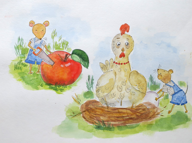 Мария Чутко, 15 лет, г. Москва, обладатель диплома «Книжный график. XXI век», представляет историю в картинках «Мышиный пирог».