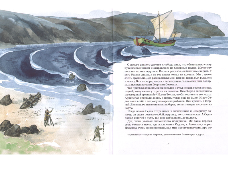 Казалось бы, путешествия – не самая простая и увлекательная тема для маленьких детей, скорее она может заинтересовать мальчишек лет семи. Но всю книжку очень внимательно слушали и мальчики, и девочки, даже четырех-пятилетние. Все-таки в этом тексте очень хорошо сбалансированы познавательное и эмоциональное, героизм и юмор, приключения и рассуждения...