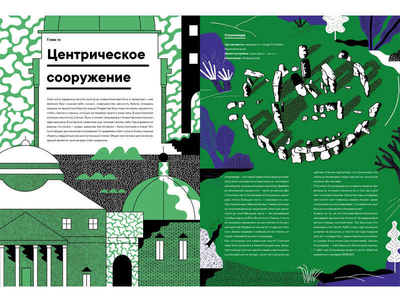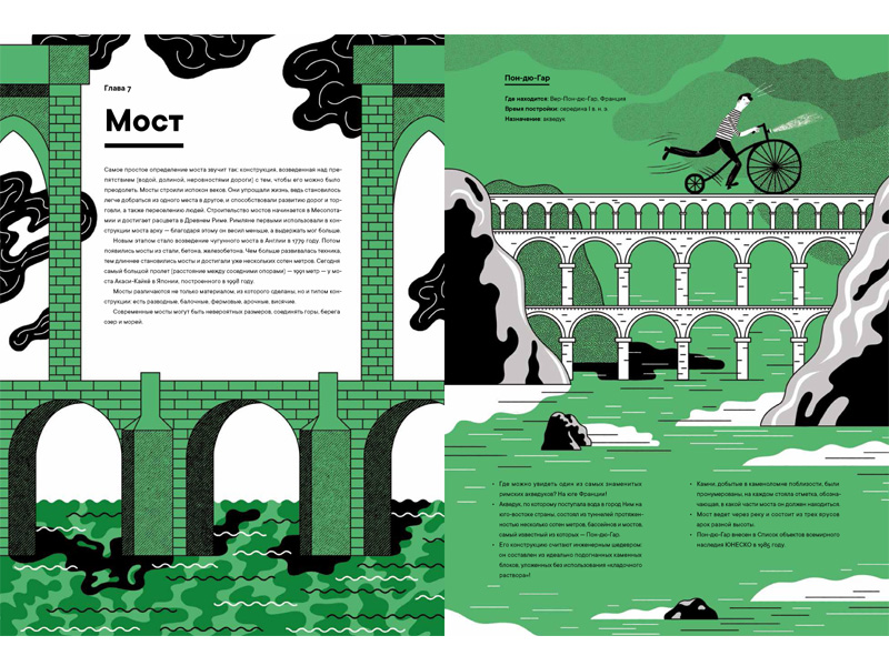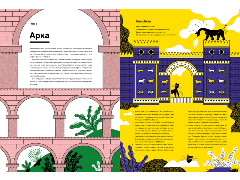 Книга Магдалены Еленской «Архистория» удивила меня прежде всего своей структурой. Я ожидала встретиться с привычной историей архитектуры, когда примеры построек рассматриваются хронологически, или с исследованием архитектурных стилей через ключевые элементы (например, дорический, ионический и коринфский ордер в оформлении колонн древнегреческих храмов). Но эта книга рассказывает о строительных материалах (камень, кирпич, бетон или стекло) и известных архитектурных формах (арка, купол, мост, башня и т.д.). И рассказывает увлекательно!