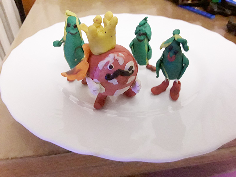 В этот раз мы решаем сделать героев сказки из пластилина. Конечно, можно взять настоящие продукты, но так хочется устроить маленький театр.