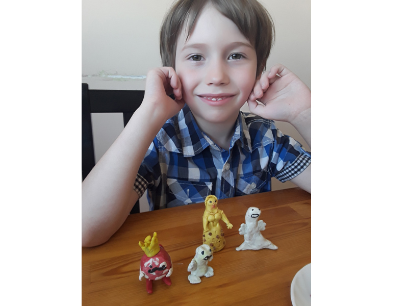 Например, он любит выражение «жил вражина в отдельном лотке» (теперь слово «вражина» у него главное ругательство, а слово «лоток» обогатило словарный запас). Или самая любимая реплика Сережи: «В майонез нырнете сами, и дяди, и тети, станете майонезными, жирными и неполезными». Мы даже решаем слепить две фигурки майонеза. Майонез поменьше для начала и большую фигурку – это расхрабрившийся майонез, который пополз к царскому трону.