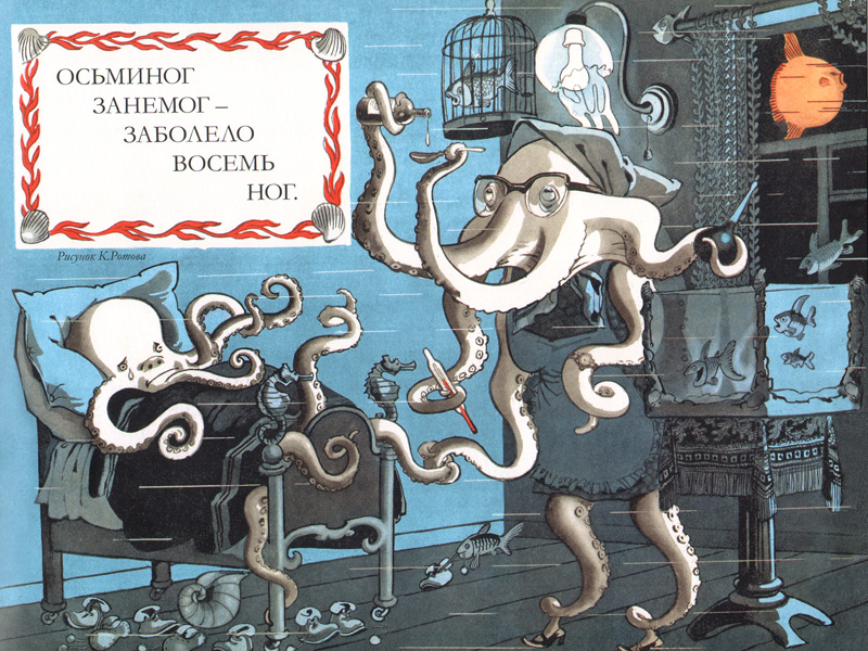 Некоторые художники разрабатывали только чужие темы. Константин Ротов, например. Он пришел в «Веселые картинки» уже немолодым человеком, у которого, к тому же, украли 15 лет жизни – он провел их в ссылке. Вот он ничего не придумывал. Но рисовальщик был гениальный.