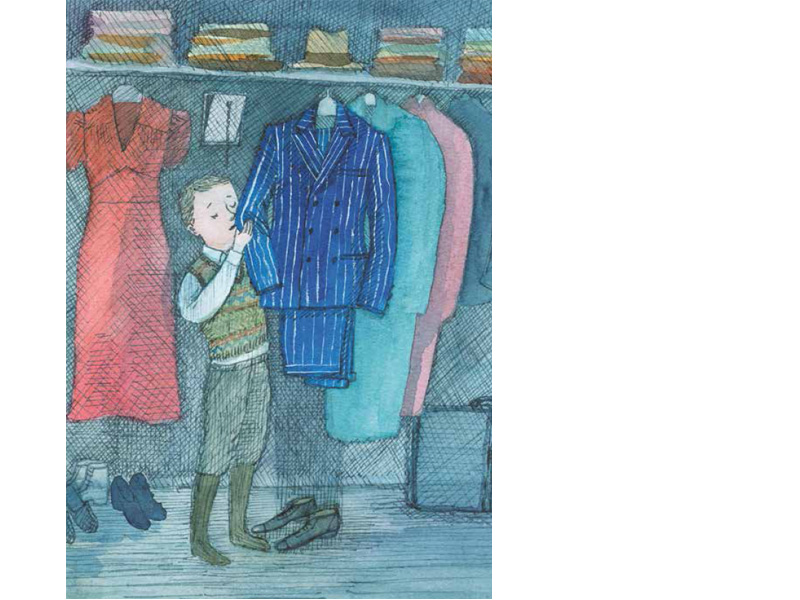 В книге есть замечательные эпизоды, когда Фред разговаривает в гардеробной с отцом, ушедшим на войну. Там папин костюм, темно-синий в светлую полоску, и его выходные туфли (родители любили танцевать вместе). Взрослеющему мальчику хочется, чтобы отец был рядом. И ветер в вентиляционной трубе как будто отвечает его голосом: