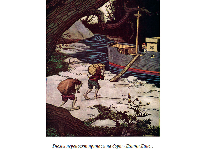 Интересно, что у каждого из гномов есть свой характер. Вьюнок ‒ самый старый и мудрый, очень рассудительный, он всегда находит решение. Еще он очень храбрый, и благодаря Вьюнку гномы спасли молодого и неопытного Тысячелиста из лап хитрого Лиса. Меум ‒ умный и сообразительный гном, с техническим складом ума. Он понял, как завести корабль «Джинни Динс», и он же сконструировал Чудо-птицу для полета в Ирландию. Тысячелист, самый молодой из гномов, родился, когда Юлий Цезарь высадился в Англии. Именно ему приходится делать самую грязную работу и готовить еду. Остальные гномы считают, что он слишком маленький. Морошик ‒ гном, который очень любит приключения. Он не упустил возможность полететь в Норвегию с Небесными Гончими – гусями, позабыв, что остальные гномы очень волновались. После путешествия Вьюнок перестал хорошо относиться к Морошику. Сначала меня это смущало. На месте Вьюнка я бы с радостью послушал рассказы о Небесных Гончих и холодной стране. Но потом все выяснилось: Вьюнка бесил характер Морошика. Ему не нравилось, что, когда остальные гномы работают, чтобы обеспечить себе спокойную жизнь, Морошик гуляет в стороне либо путешествует, а потом приходит на все готовое. И еще одно. Вьюнок и остальные гномы всегда любят после трудного и опасного путешествия вернуться в свой уютный и теплый дом. А у Морошика такого чувства нет. Он «за бродячую жизнь». Поэтому Вьюнок и Морошик – это антиподы…