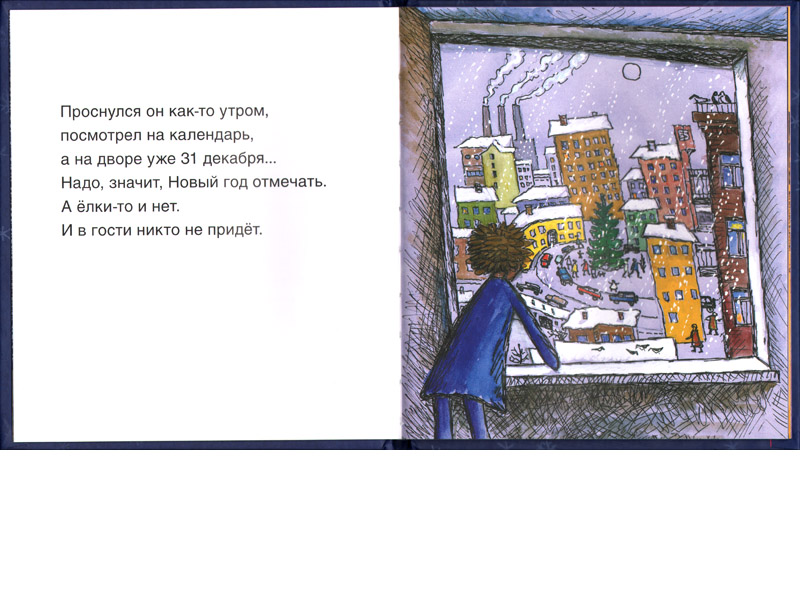 Мы никогда даже не узнаем, как его звали, этого человека, но папе с мамой не скучно будет читать эту книжку ребенку на ночь. Потому что она, и словами, и такими новогодними рисунками Александры Фоминой, разговаривает с маленьким и с взрослым.