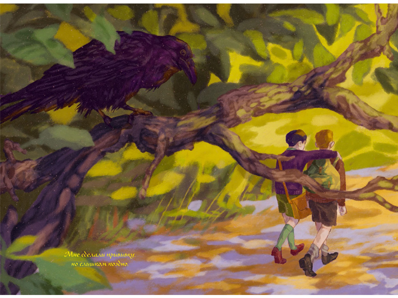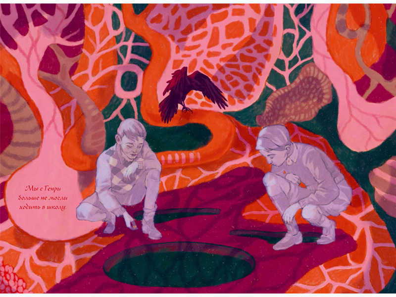 Книга одновременно и написана, и нарисована, и я даже не знаю, что мне понравилось больше. Вообще, я не видела ничего похожего на эту книгу. Сюжет в ней развивается сразу по двум линиям – в прошлом и в настоящем, и всё это напрямую влияет на будущее. Рассказ о настоящем идёт в текстовой форме и изредка попадаются чёрно-белые картинки. А вот прошлое в основном нарисовано, текста там совсем немного (хотя без него было бы не так понятно). И это мне очень понравилось.