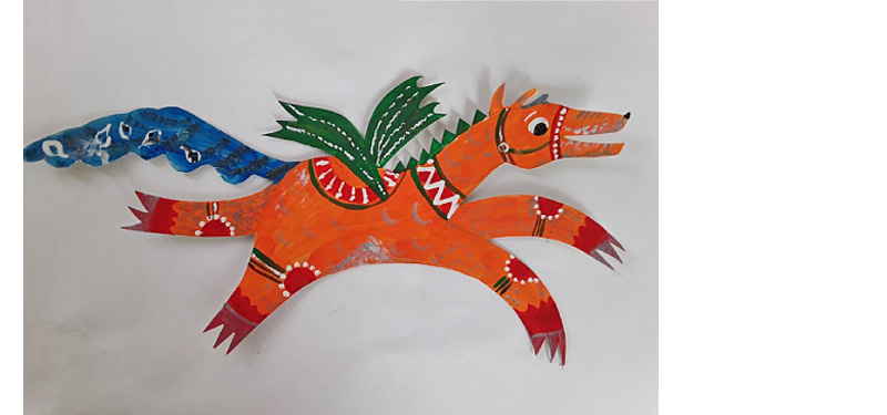 Он украшен разноцветными узорами, маленькие крылышки уносят его в сказочное пространство, а за его большим хвостом тянется шлейф новой сказки.