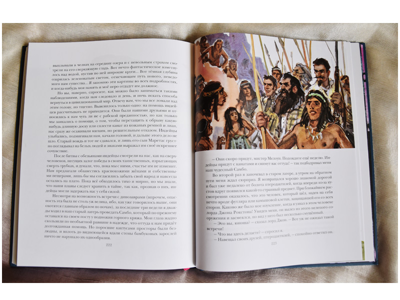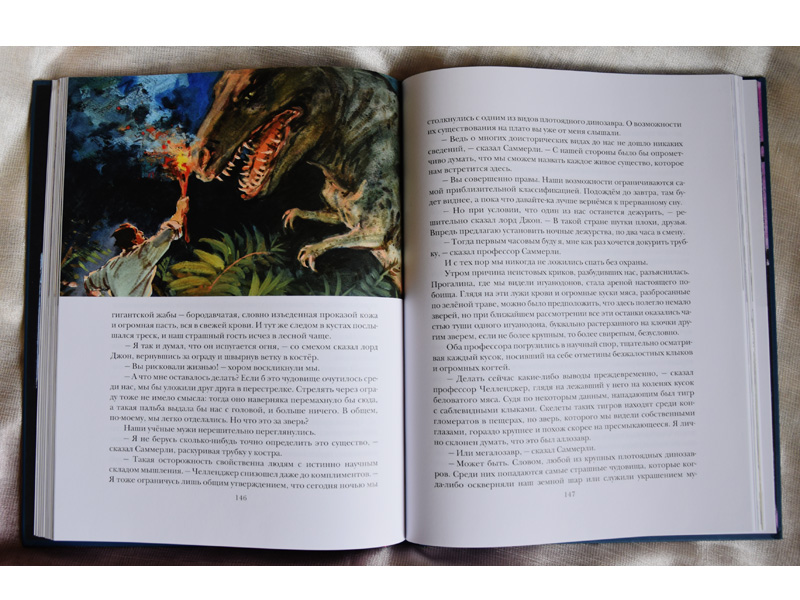 Происходящие события всегда такие напряженные, что оторваться от чтения почти невозможно. Только вместе с главным героем убежишь от хищного динозавра, как узнаёшь, что остальных взяли в плен человекообезьяны… Я, конечно, обещала не рассказывать всё самое интересное. Но есть одна вещь, которую мне хочется описать.