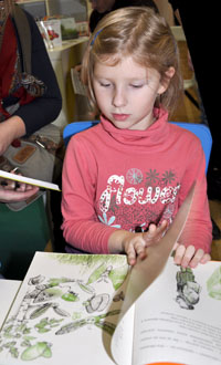 Девочка очень тщательно, медленно рассматривала каждую книжку. В конце концов, предпочтение было отдано книге издательства «Нигма» с иллюстрациями Г. Калиновского.
