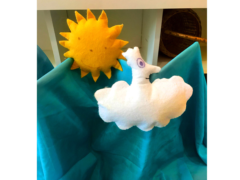 Солнце помогает ему испариться и превратиться в облако. А ветер (невидимая синьора Ветер) отправляет его в путь по небу.