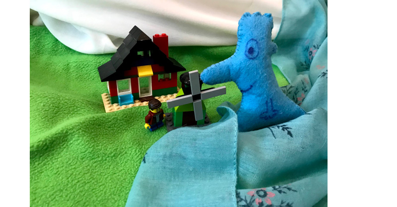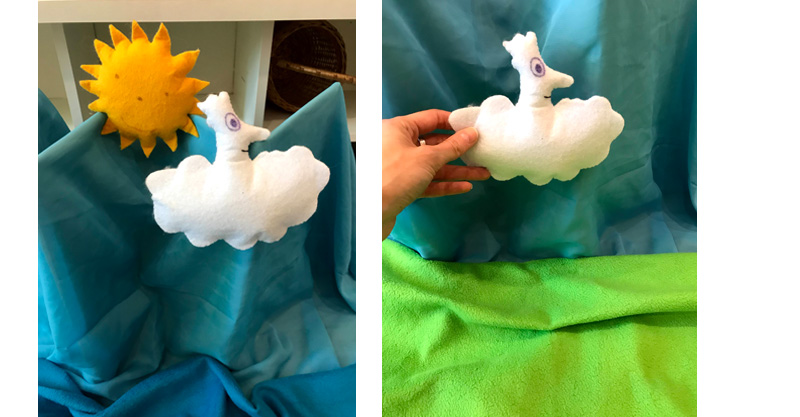Я сшила персонажей из фетра по нарисованным от руки выкройкам.